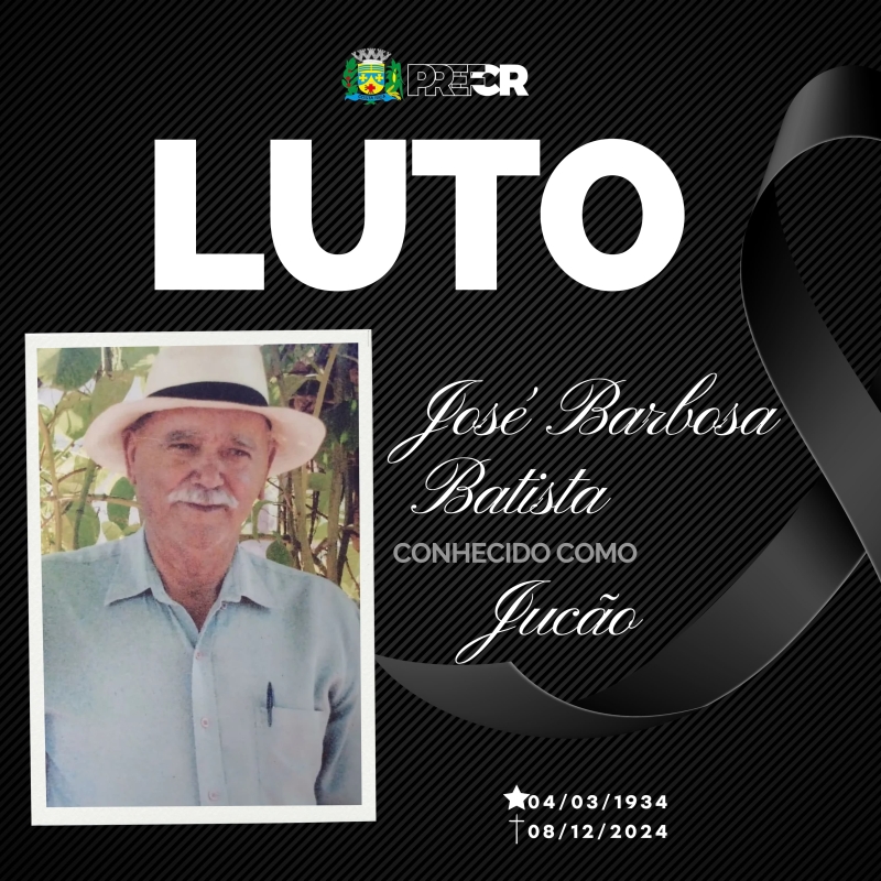 Considerando, que é dever do Poder Público render justas homenagens àqueles que com o seu trabalho, seu exemplo e sua dedicação, contribuíram para o bem-estar da coletividade, o prefeito municipal, delegado Cleverson Alves dos Santos, decreta Luto Oficial, por três dias em todo o território do Município de Costa Rica em sinal de profundo pesar pelo falecimento do Senhor José Barbosa Batista (Jucão).