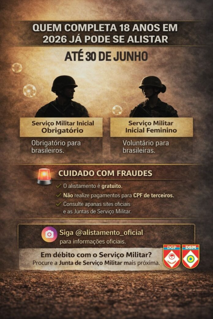Jovens que completam 18 anos em 2026 devem se alistar até 30 de junho