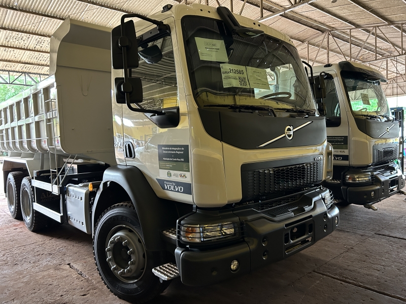 A aquisição contempla dois caminhões rígidos Volvo modelo VM 290 6x4R, ambos movidos a motor diesel, com tecnologia que atende à norma Euro 6, garantindo menor impacto ambiental. Um dos veículos é equipado com caçamba basculante de 12 m³, marca AIZI, com dispositivo de segurança que impede o acionamento involuntário da tomada de força, conforme determina a Resolução Contran nº 859/2021. O outro caminhão conta com tanque pipa com capacidade para 15 mil litros, marca Tanksul, destinado principalmente ao transporte de água e ao apoio em serviços urbanos e rurais.